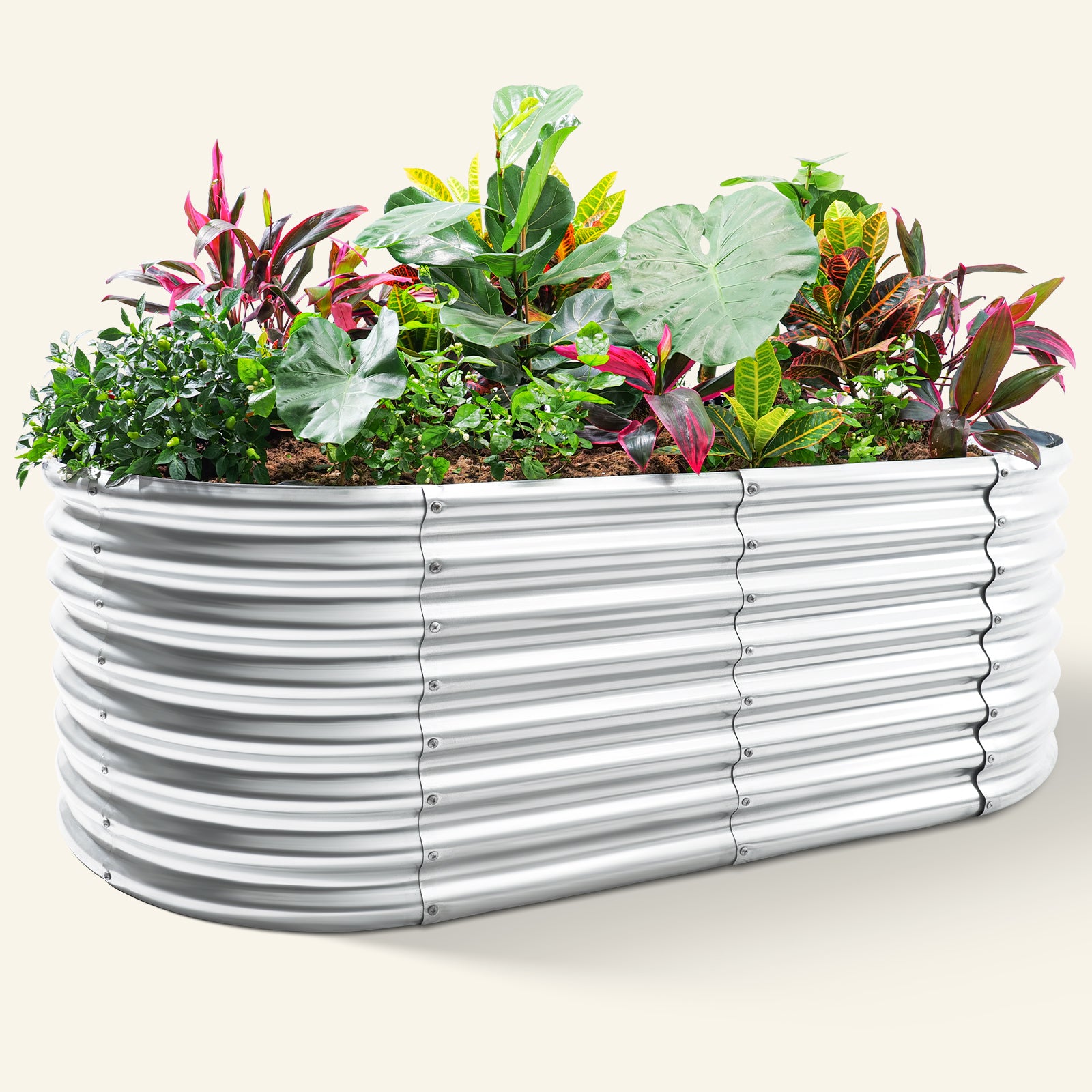 24" Tall Oval 6x3x2ft Galvanized Raised Garden Bed
