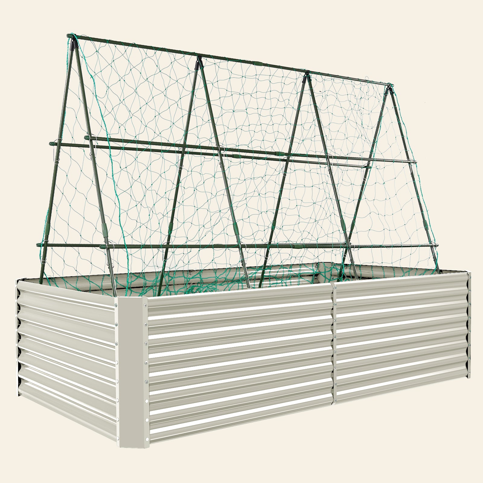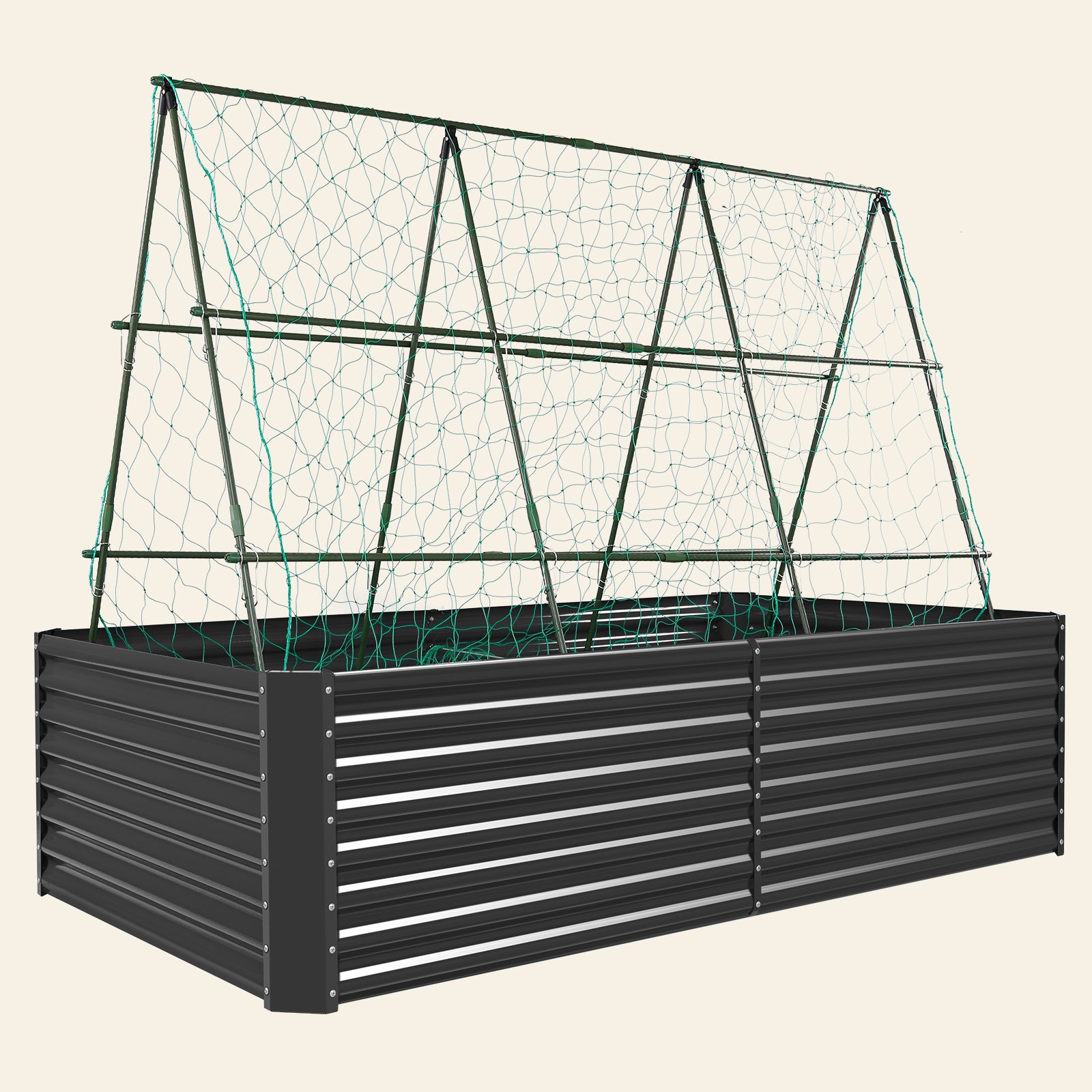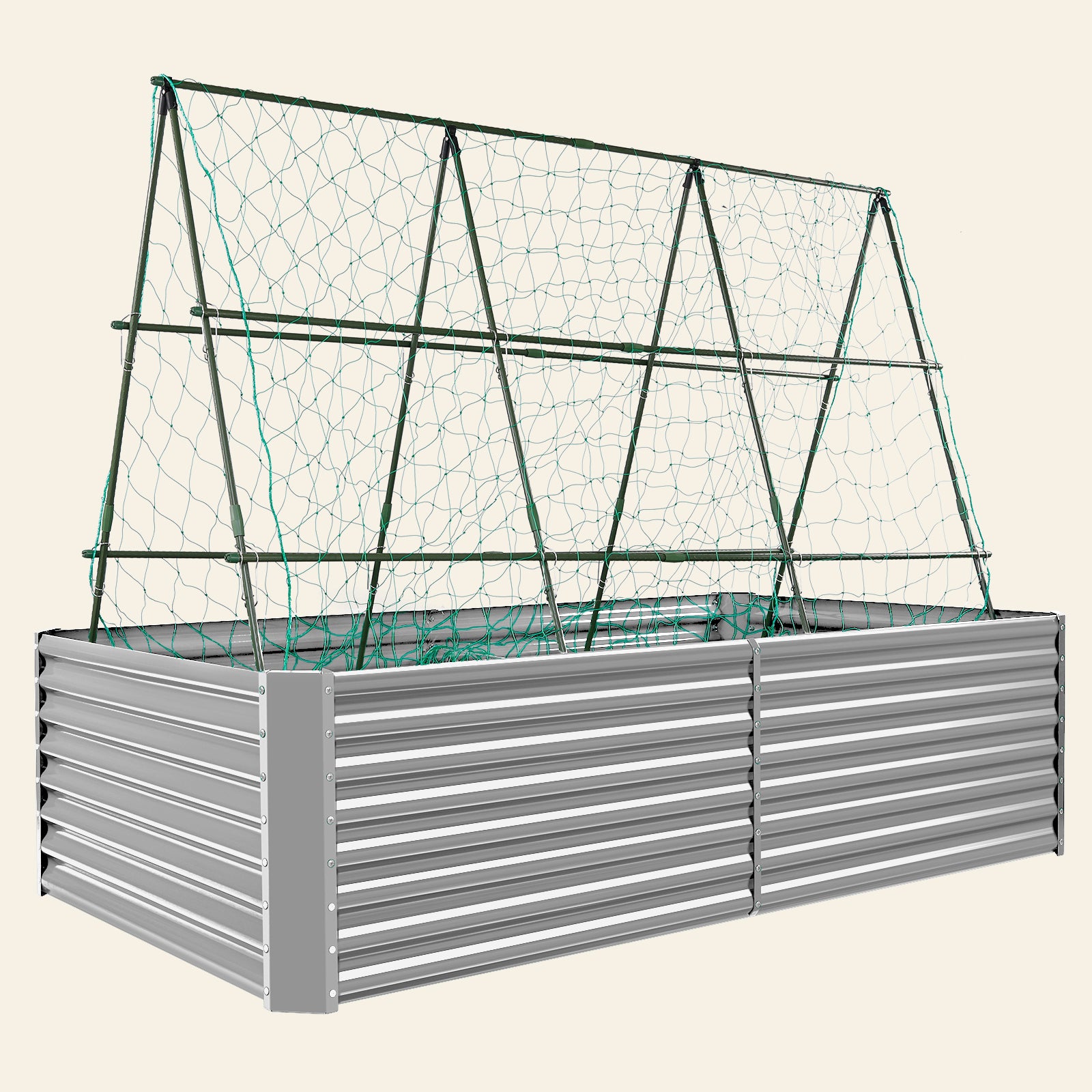 A-Frame Garden Trellis+8x4x2ft Galvanized Raised Garden Bed