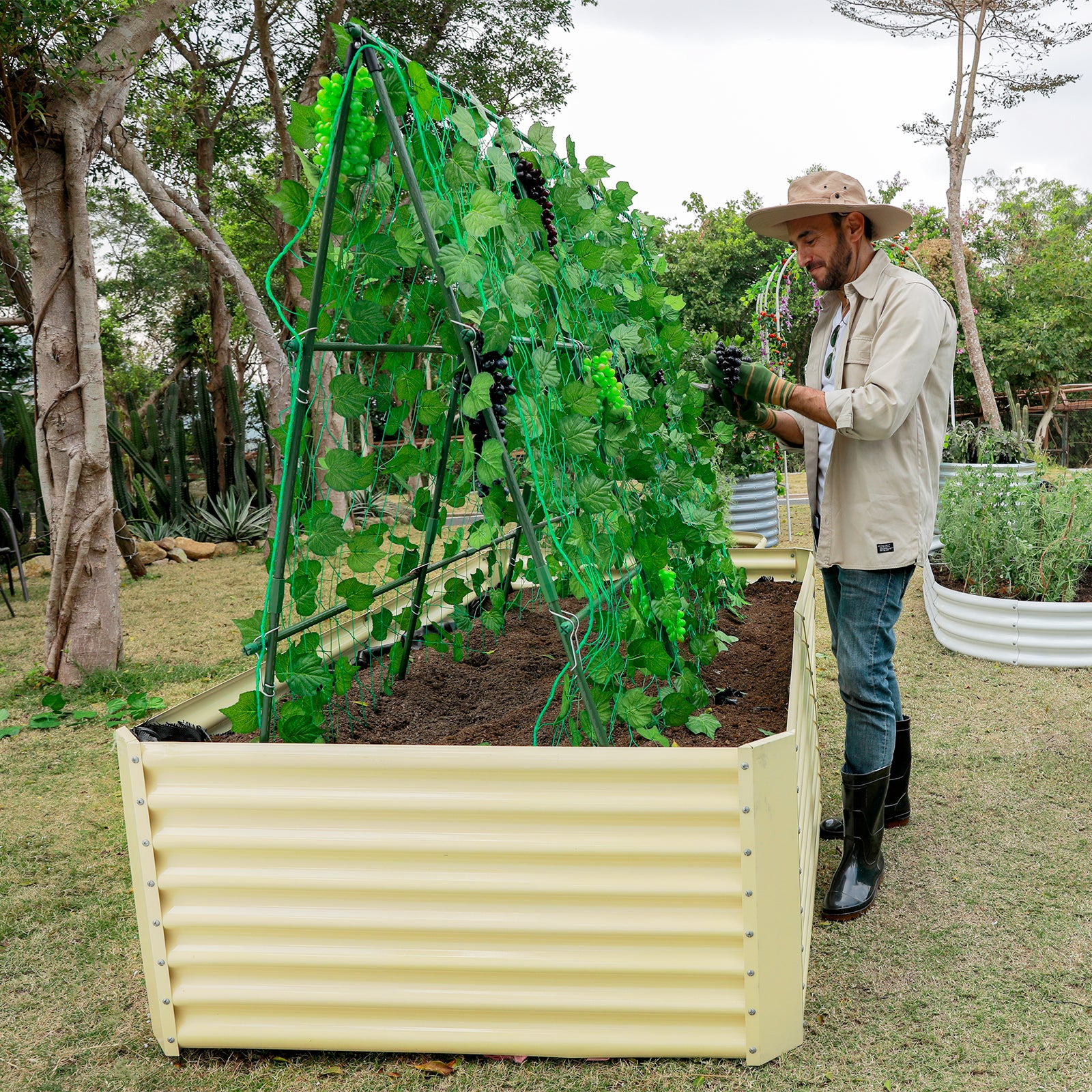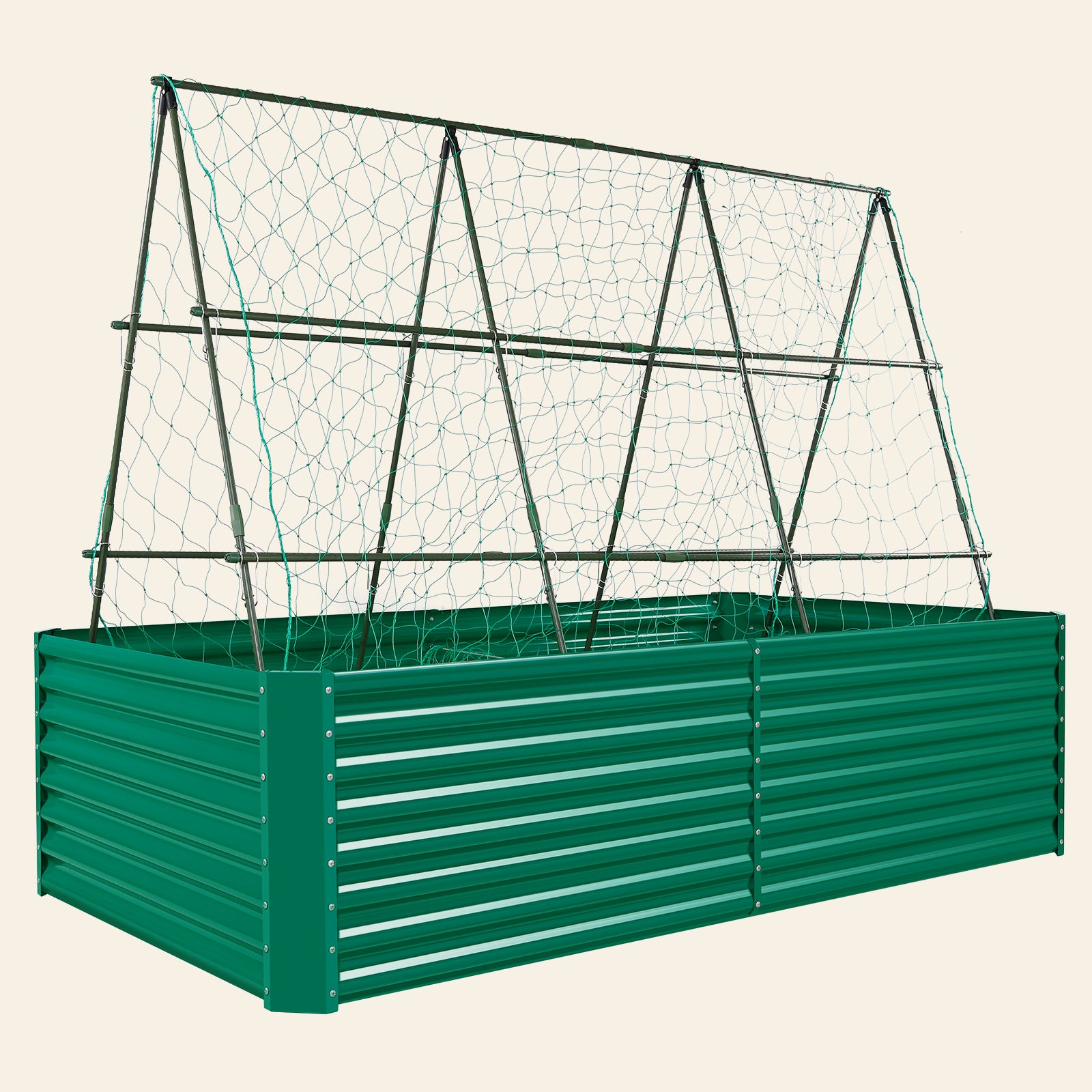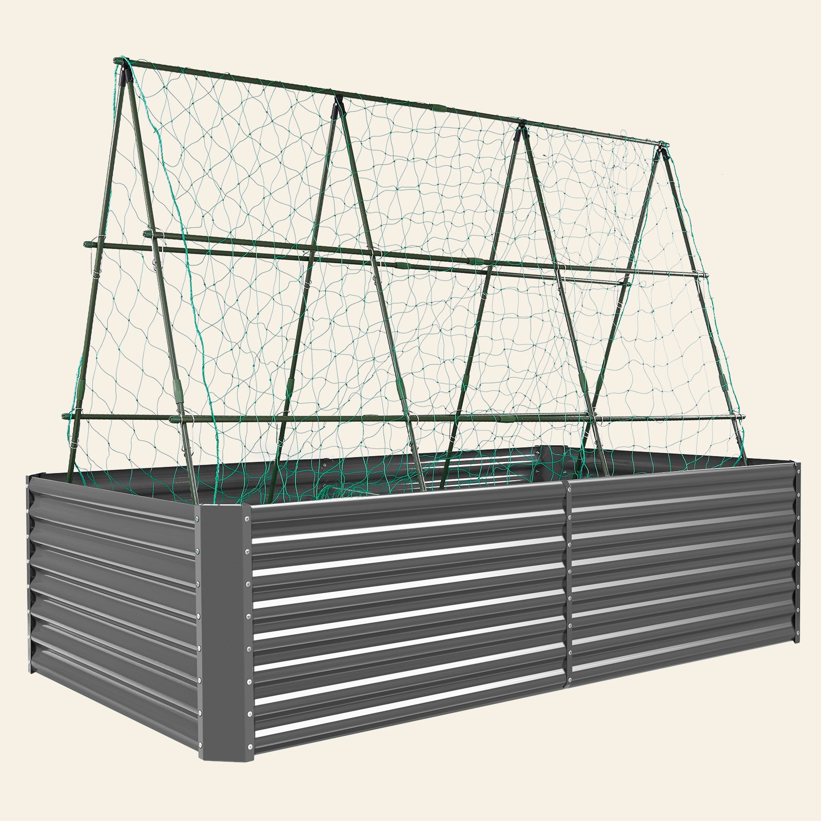 A-Frame Garden Trellis+8x4x2ft Galvanized Raised Garden Bed
