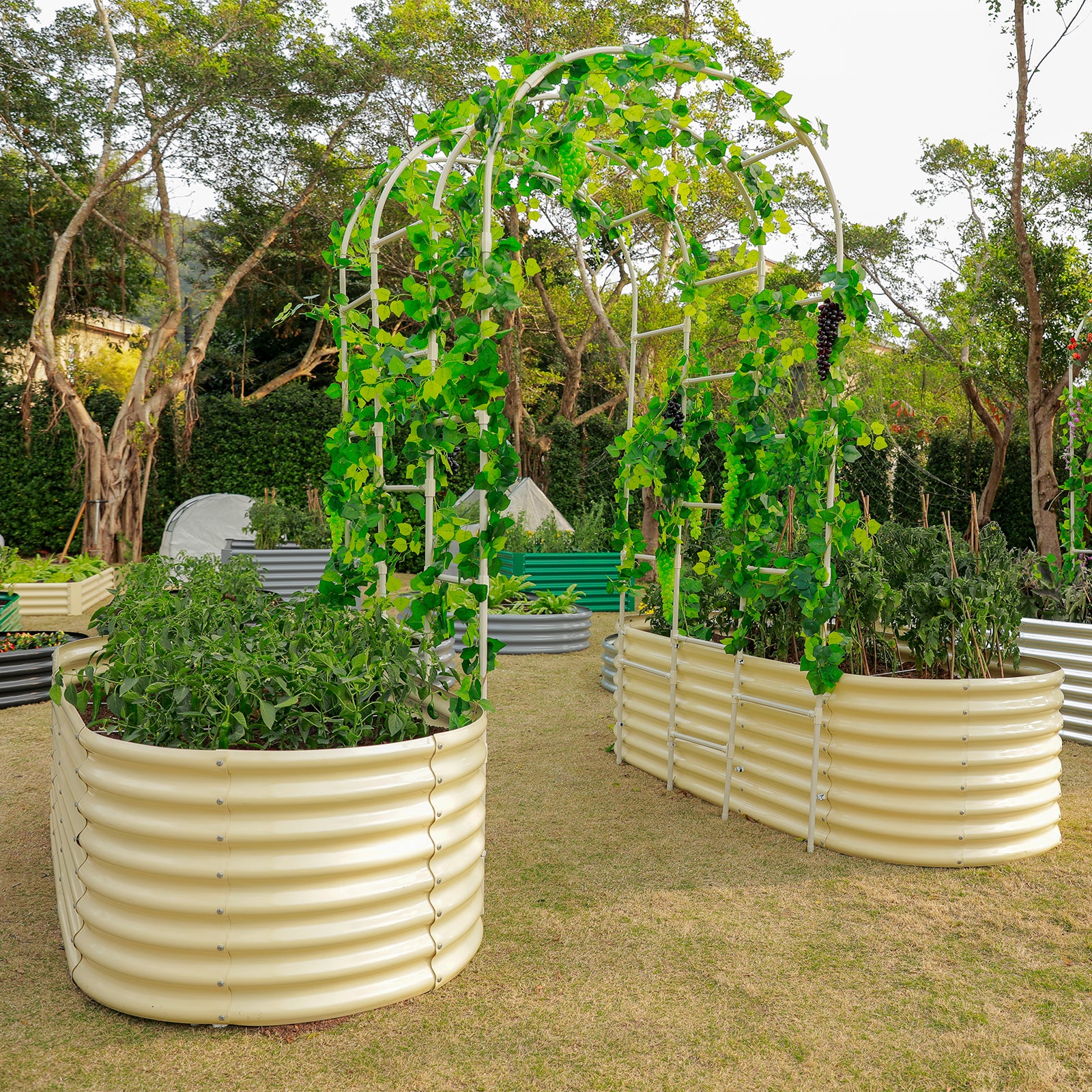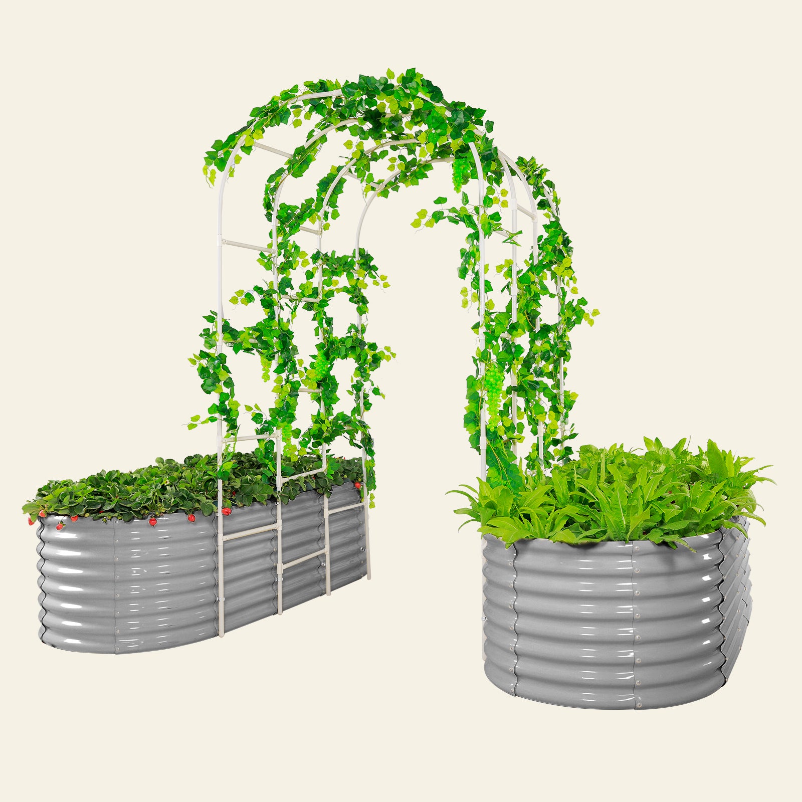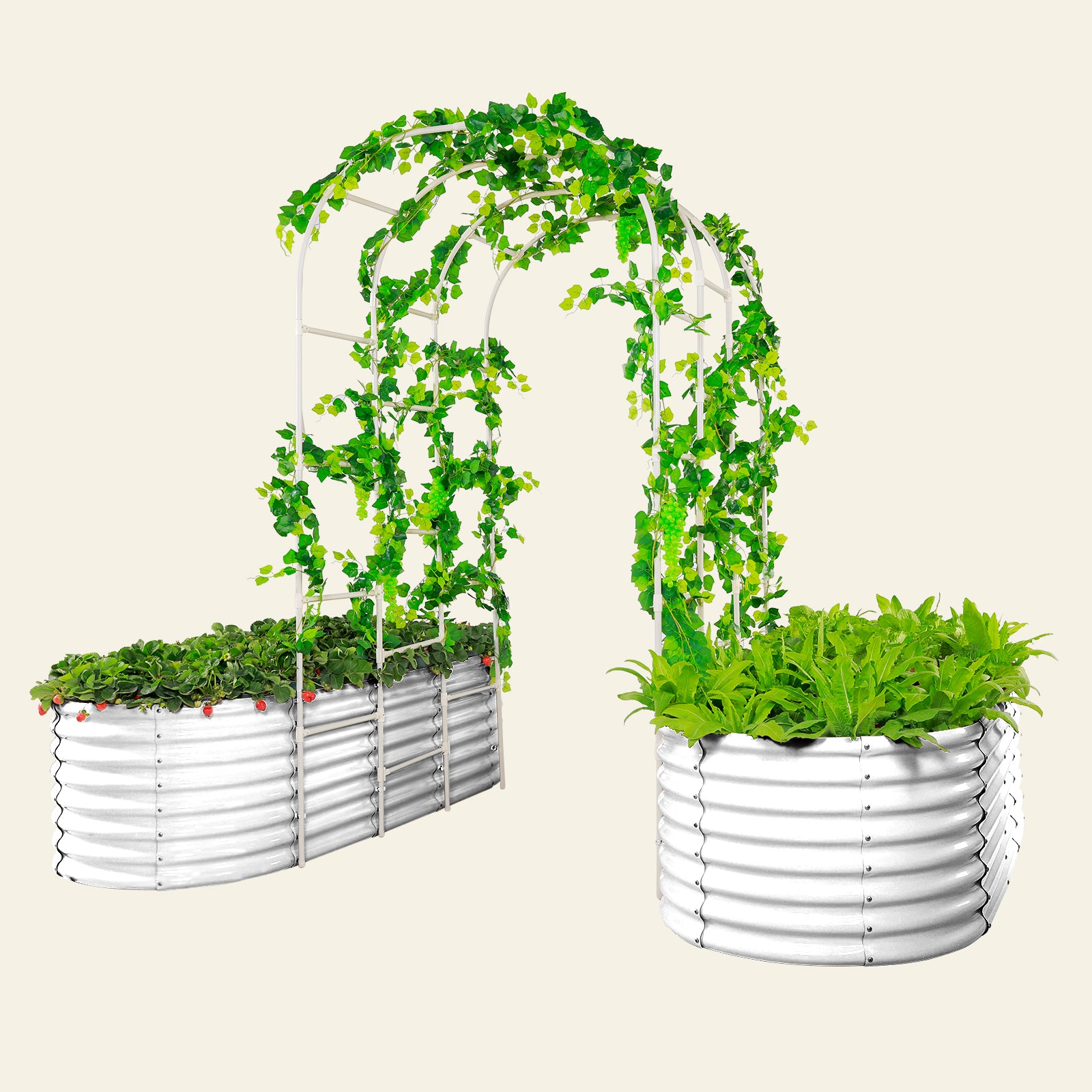 Arch Trellis with Two Pack 7.5x3x2ft Galvanized Raised Garden Beds