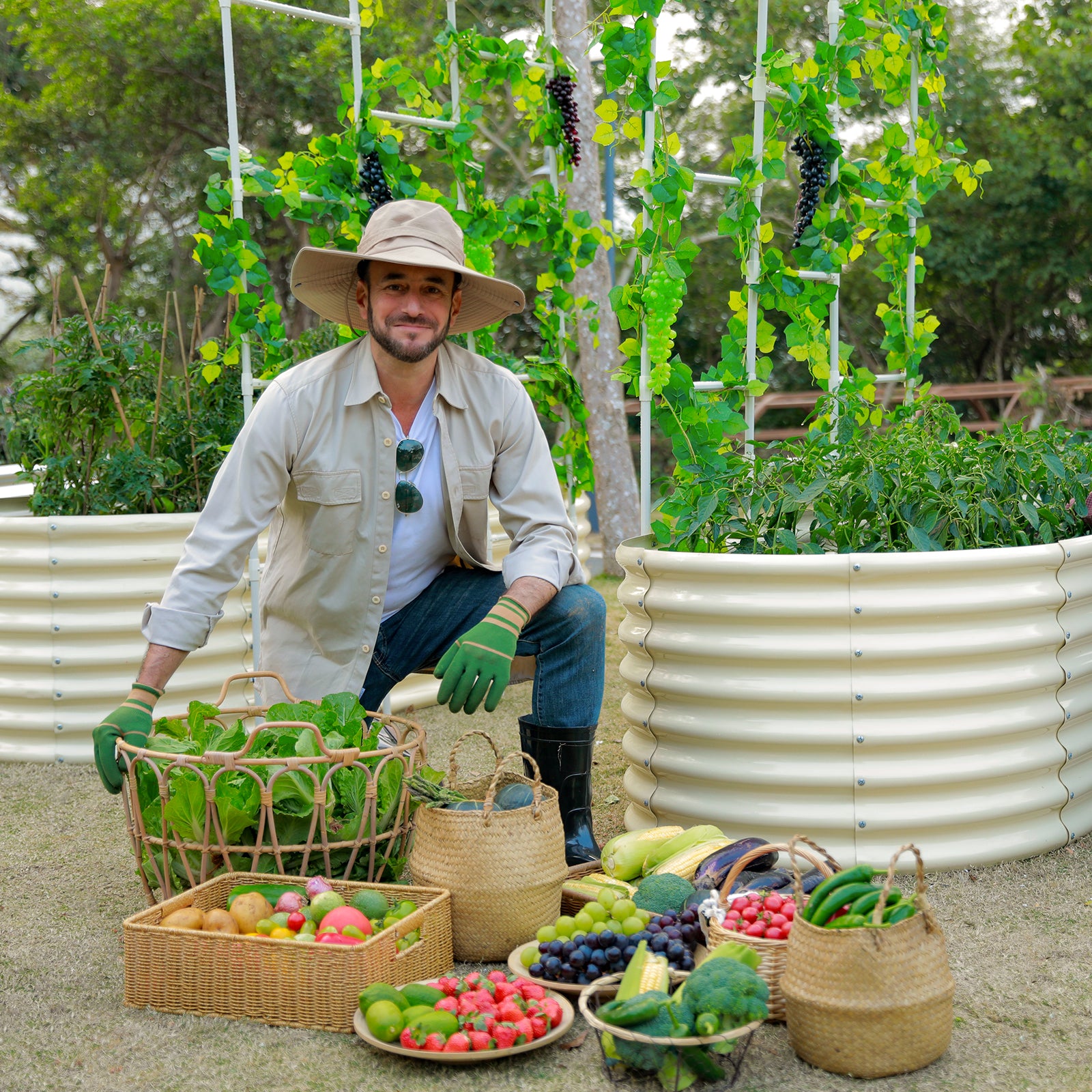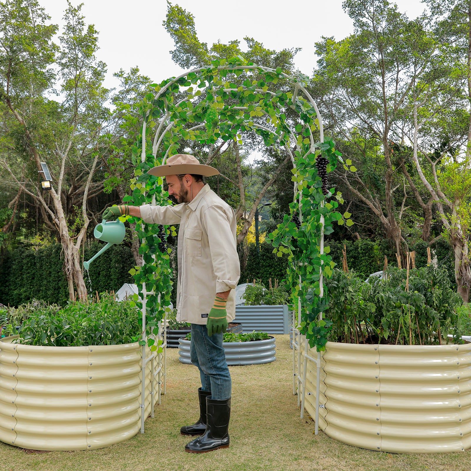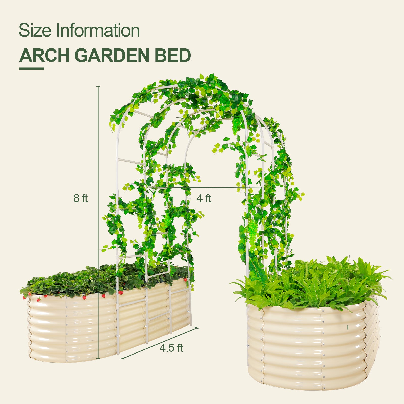 Arch Trellis with Two Pack 7.5x3x2ft Galvanized Raised Garden Beds