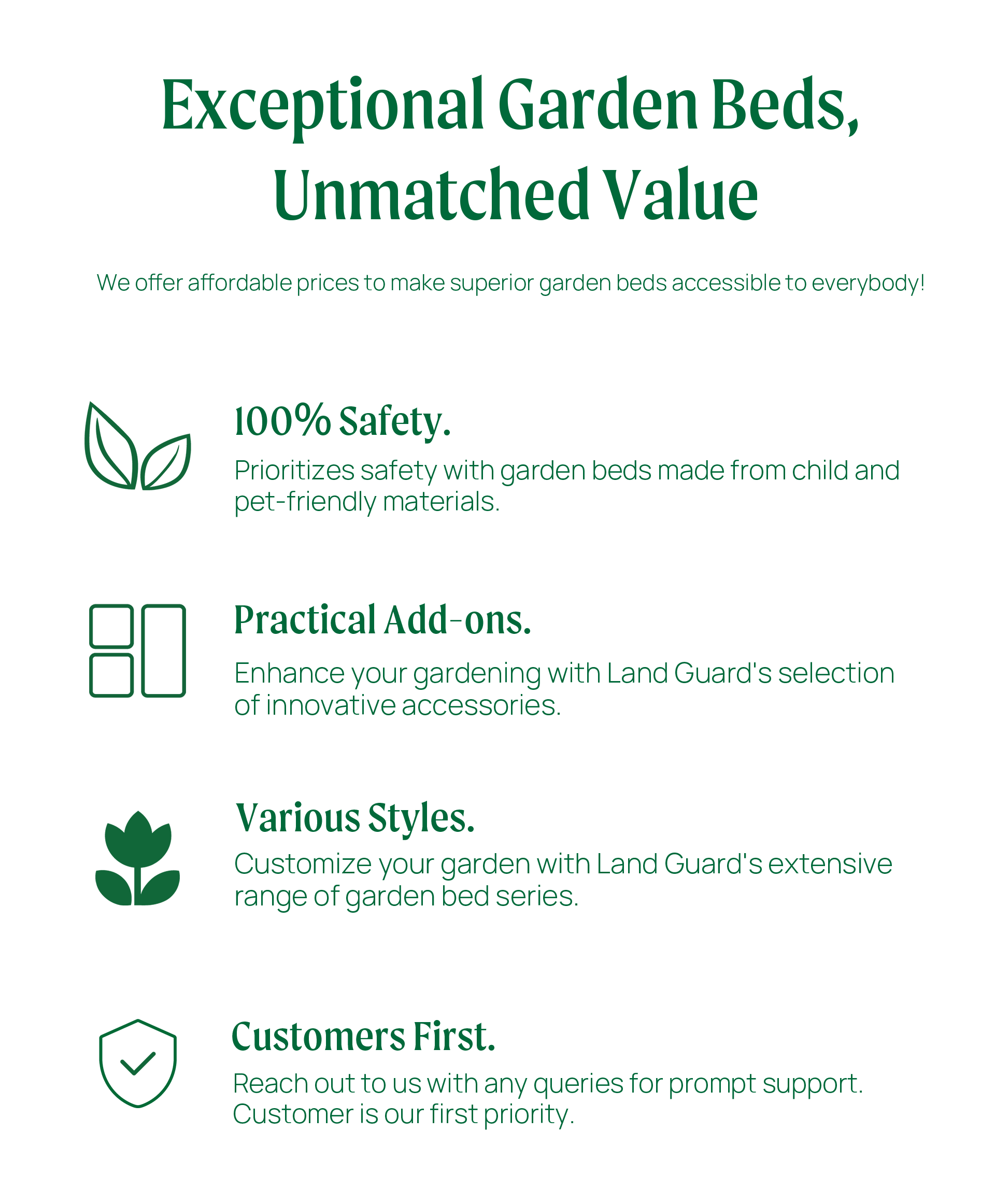 Transform your garden with Land Guard's raised metal galvanized garden beds and join the countless satisfied customers who have made their gardening dreams a reality. Affordable, durable, and stylish – that's the Land Guard promise. Happy gardening!